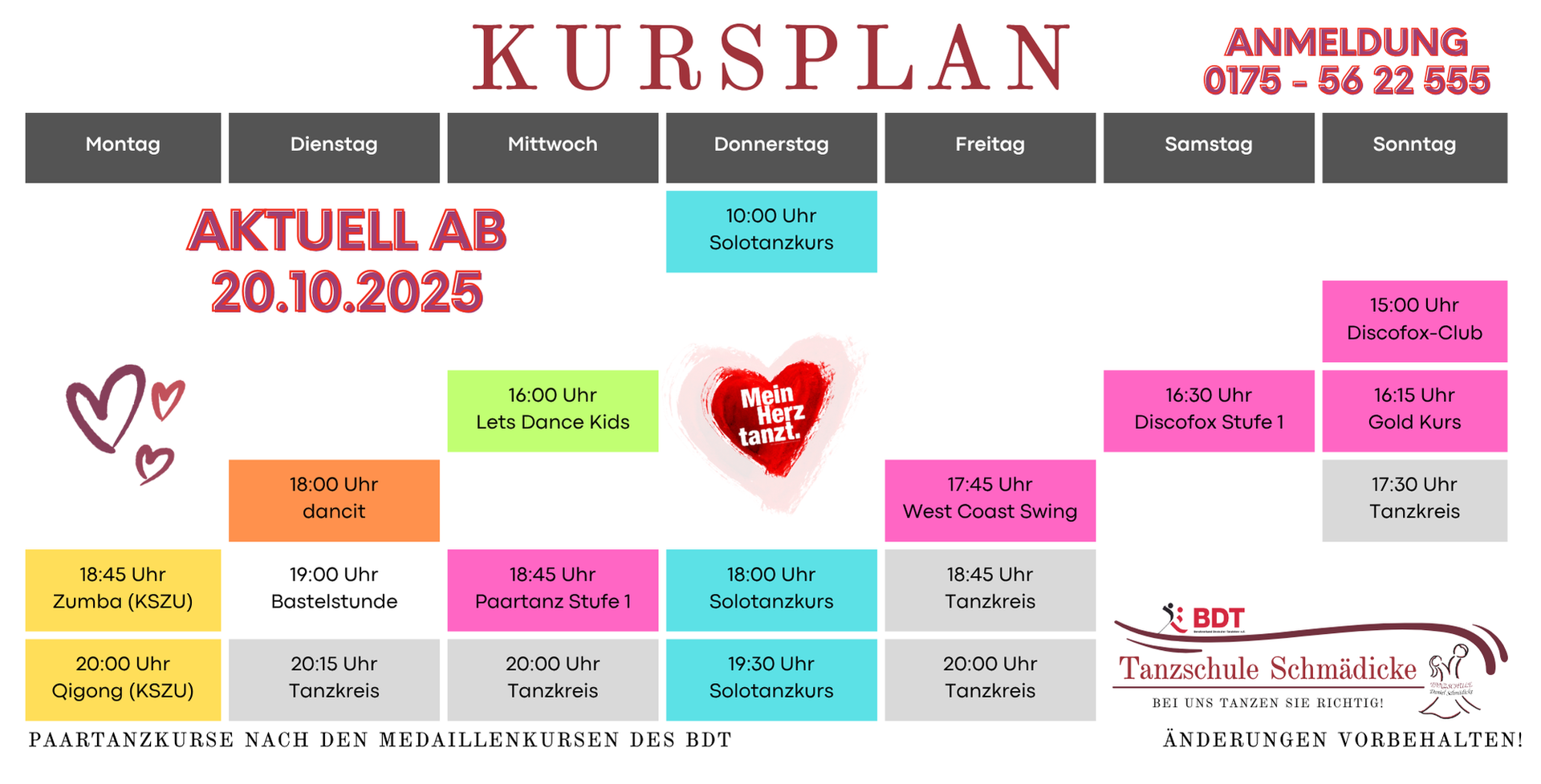 und seien Sie informiert zum Start neuer Tanzkurse.