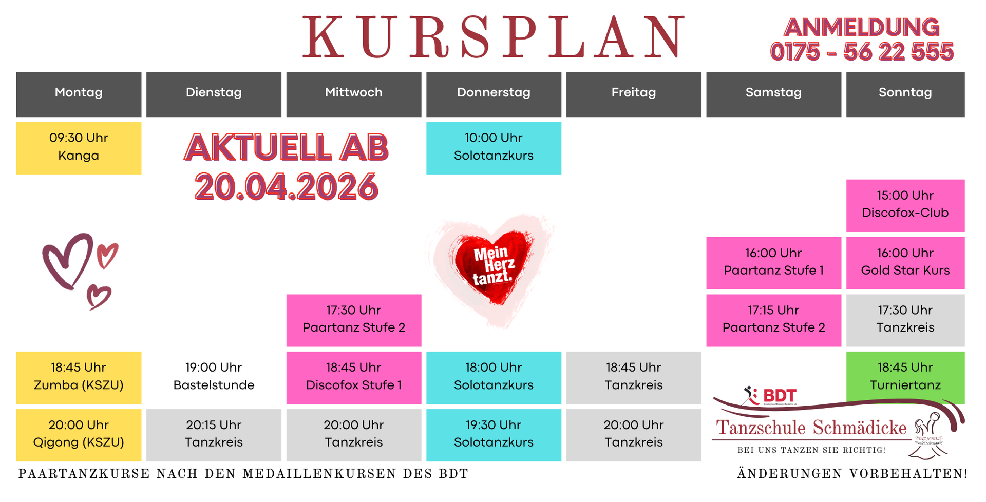und seien Sie informiert zum Start neuer Tanzkurse.
